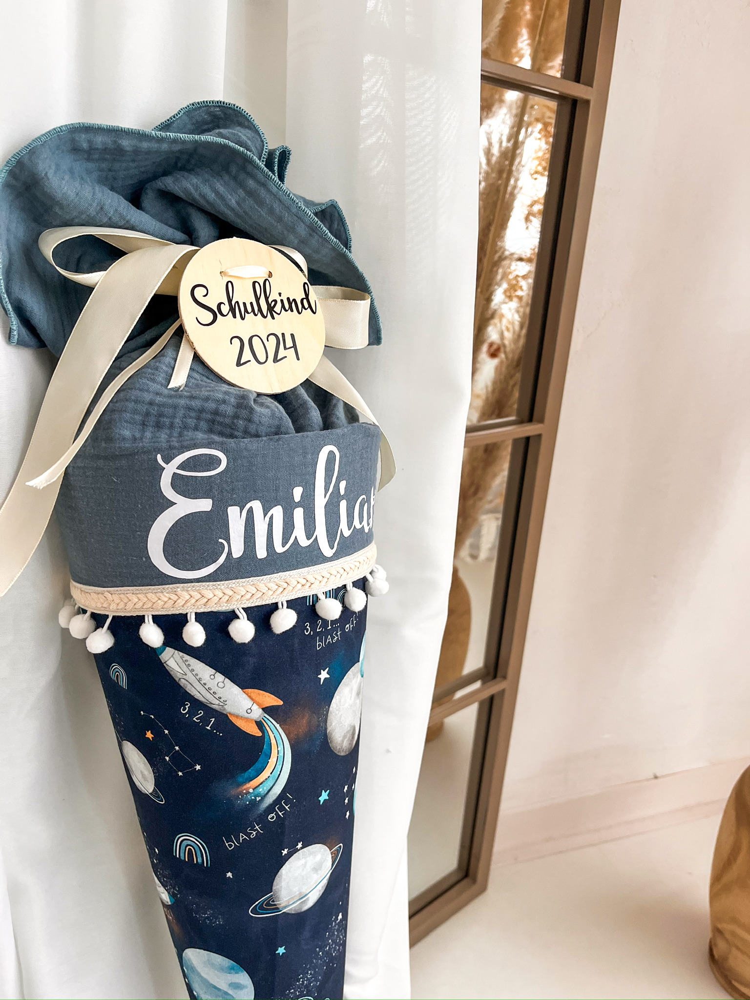 Große Schultüte / Zuckertüte optional mit Namen, Innenkissen oder Holzanhänger .