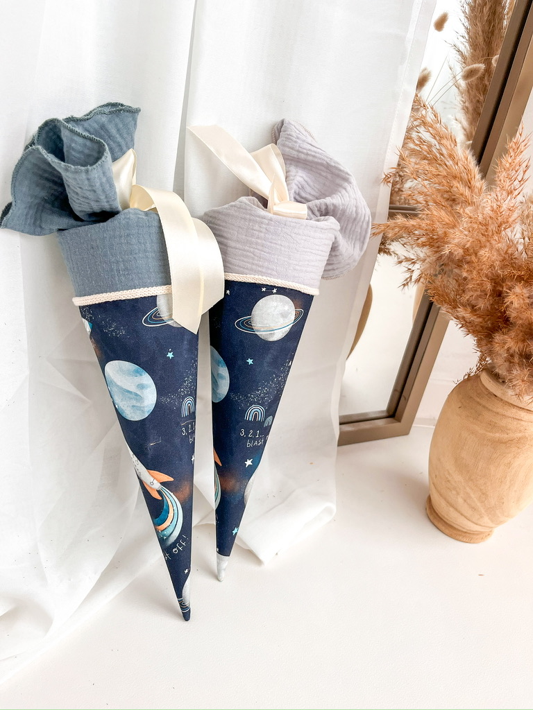Auch für Geschwister bieten wir die passende "Zuckertüte" an, mit Maßen von 35 cm für den Rohling und ca. 50 cm mit dem Stoff bezogen.