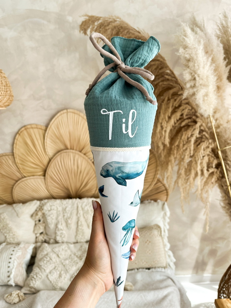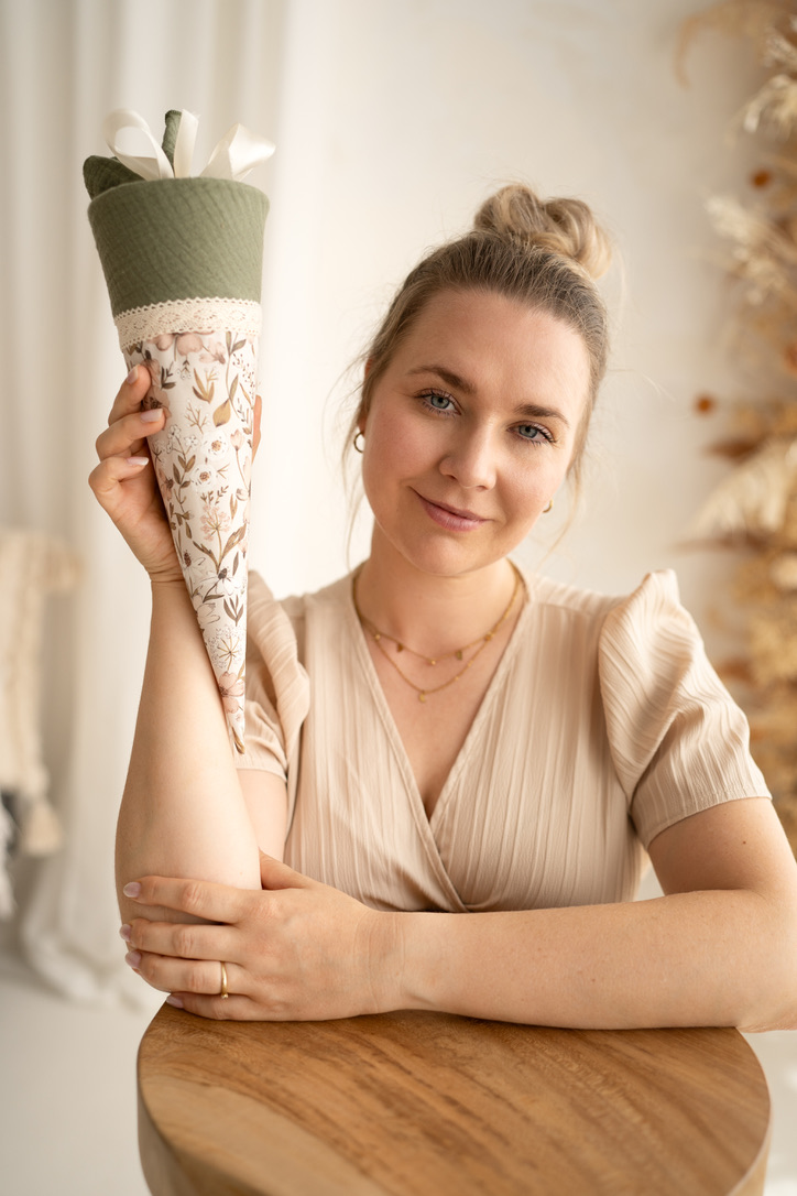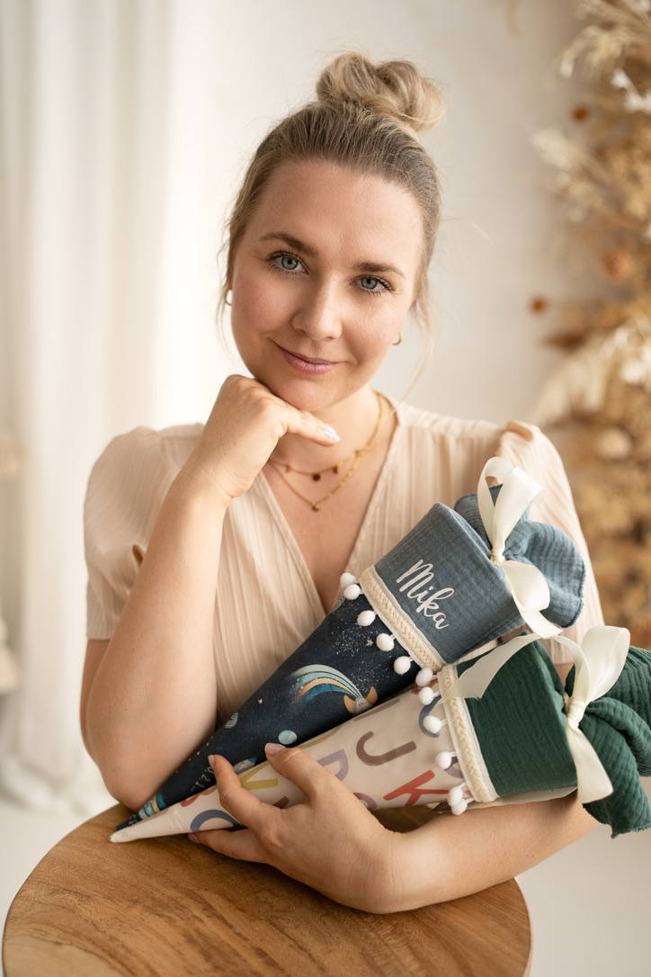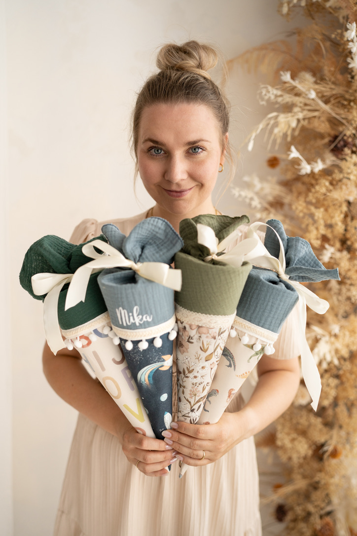Unsere liebevoll aus 100 % Baumwolle gefertigte Stofftüte ist ideal als Kitatüte, Geschwistertüte oder Geschenk zum Ausbildungsbeginn.