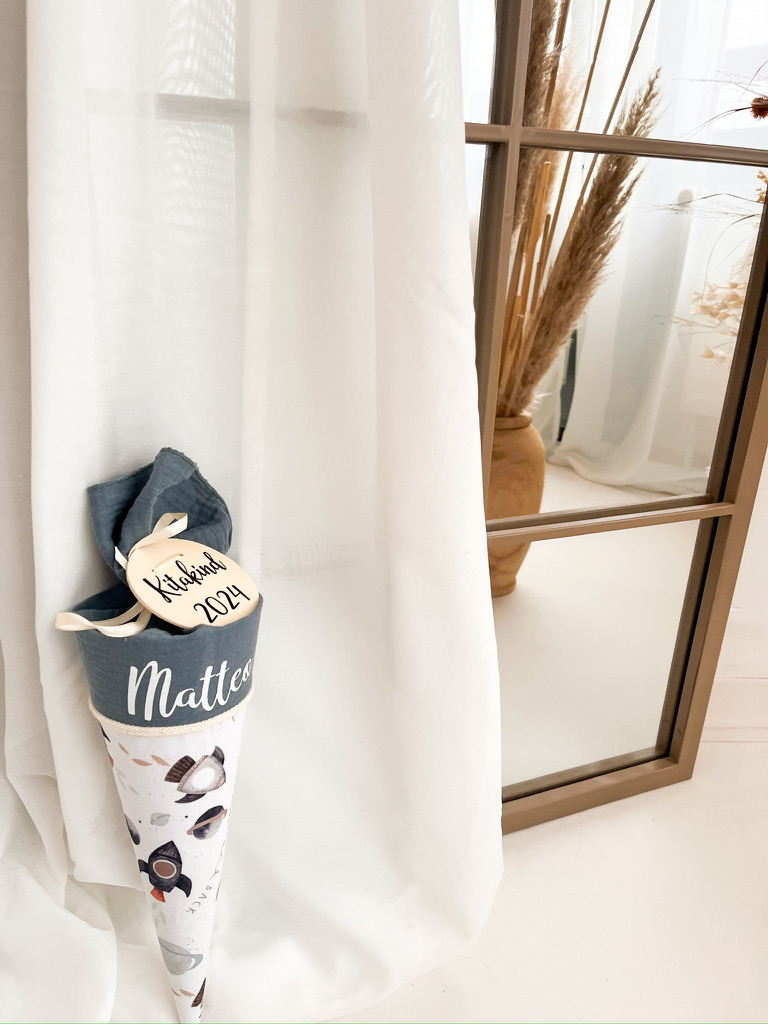 Nach dem ersten Schultag kann der Kartonrohling entfernt und durch ein weiches Kissen ersetzt werden. Dieses Upgrade, inklusive des Namens, ist als zusätzliche Option erhältlich, um sicherzustellen, dass die Schultüte genau deinen Vorstellungen und persönlichen Geschmack entspricht.