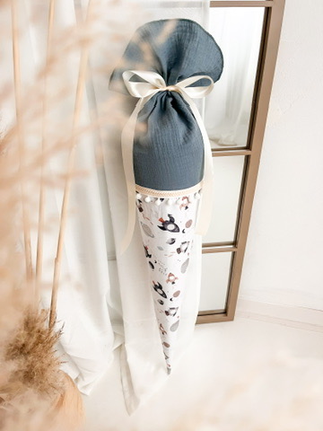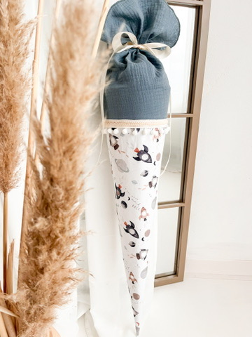 Der Schultütenrohling aus Karton zur Stabilisierung ist bereits im Lieferumfang enthalten und misst stolze 70 cm. Mit dem sorgfältig ausgewählten Stoff ummantelt, erreicht die Schultüte eine Gesamtgröße von ca. 100 cm. Auch für Geschwister bieten wir die passende "Zuckertüte" an, mit Maßen von 35 cm für den Rohling und ca. 50 cm mit dem Stoff bezogen.