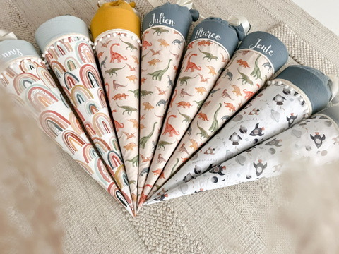 Handmade Schultüte optional mit Kissen und Namen.